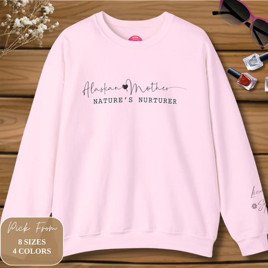 Alaskan Mother Personalized Crewneck Gildan Sweatshirt, Kids Name on Sleeve with Snowflake, Gift for New Mother with Name