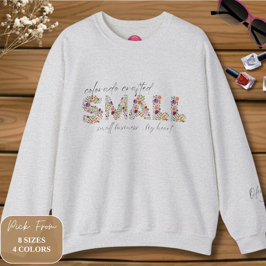 Custom Colorado's Small Business Owner Ash, Pink and Sand Crewneck Gildan Long Sleeves Sweatshirt, Custom Name on Sleeve
