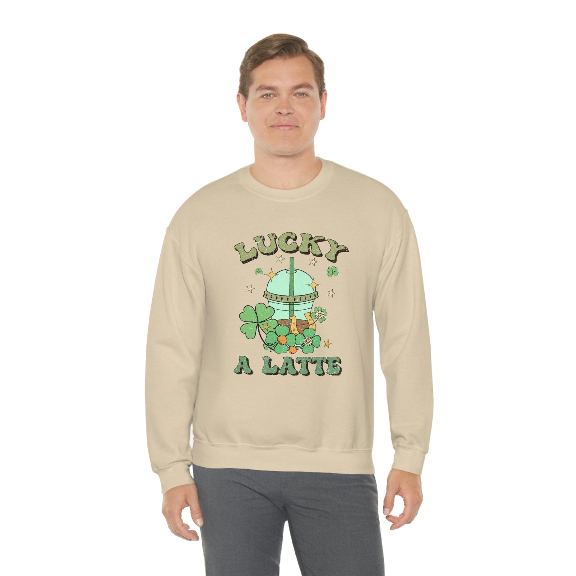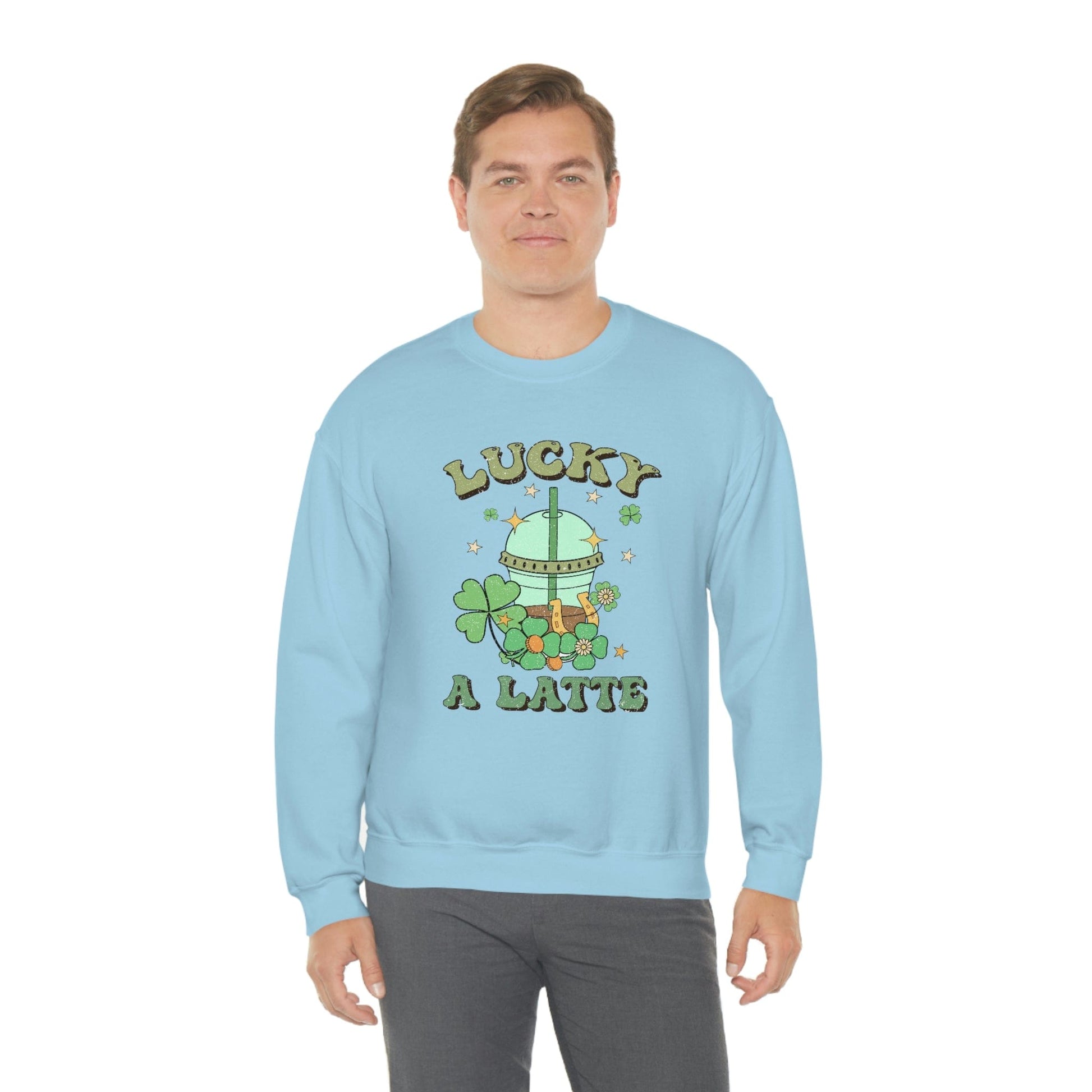 - Featuring a groovy, retro-inspired design with the phrase "Irish Lucky A Latte" in bold letters, this sweatshirt is sure to make you stand out in the crowd.