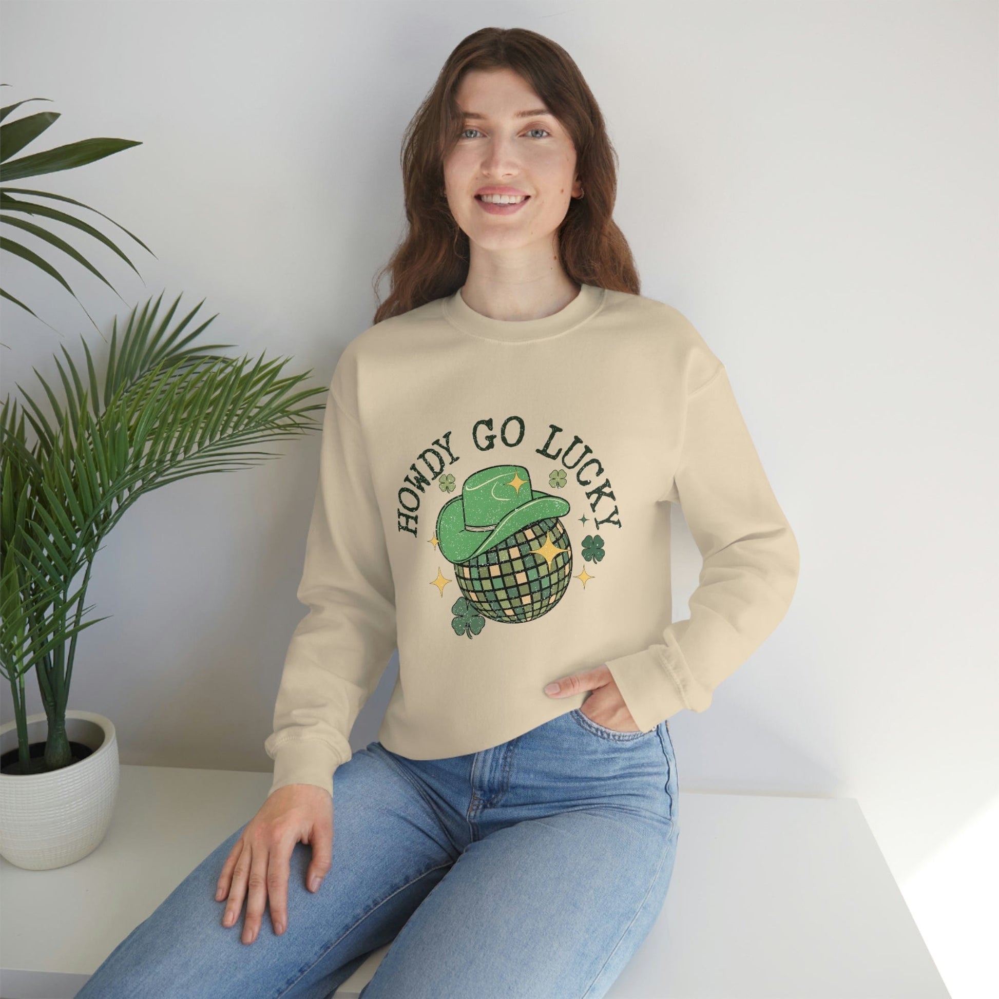 2023 Funny Sarcastic St. Patrick's Day Unisex Irish Howdy Go Lucky Cowboy Sweatshirt