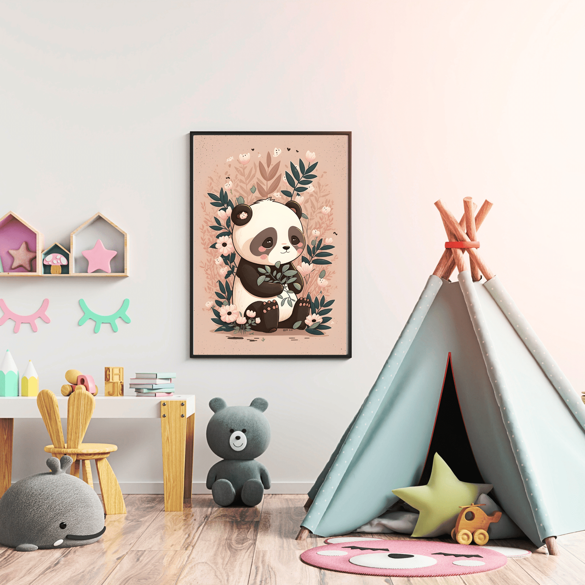 Introducing our stunning 2023 Printable Modern Kids Wall Art collection, featuring the enchanting Tropical Baby Panda Print.