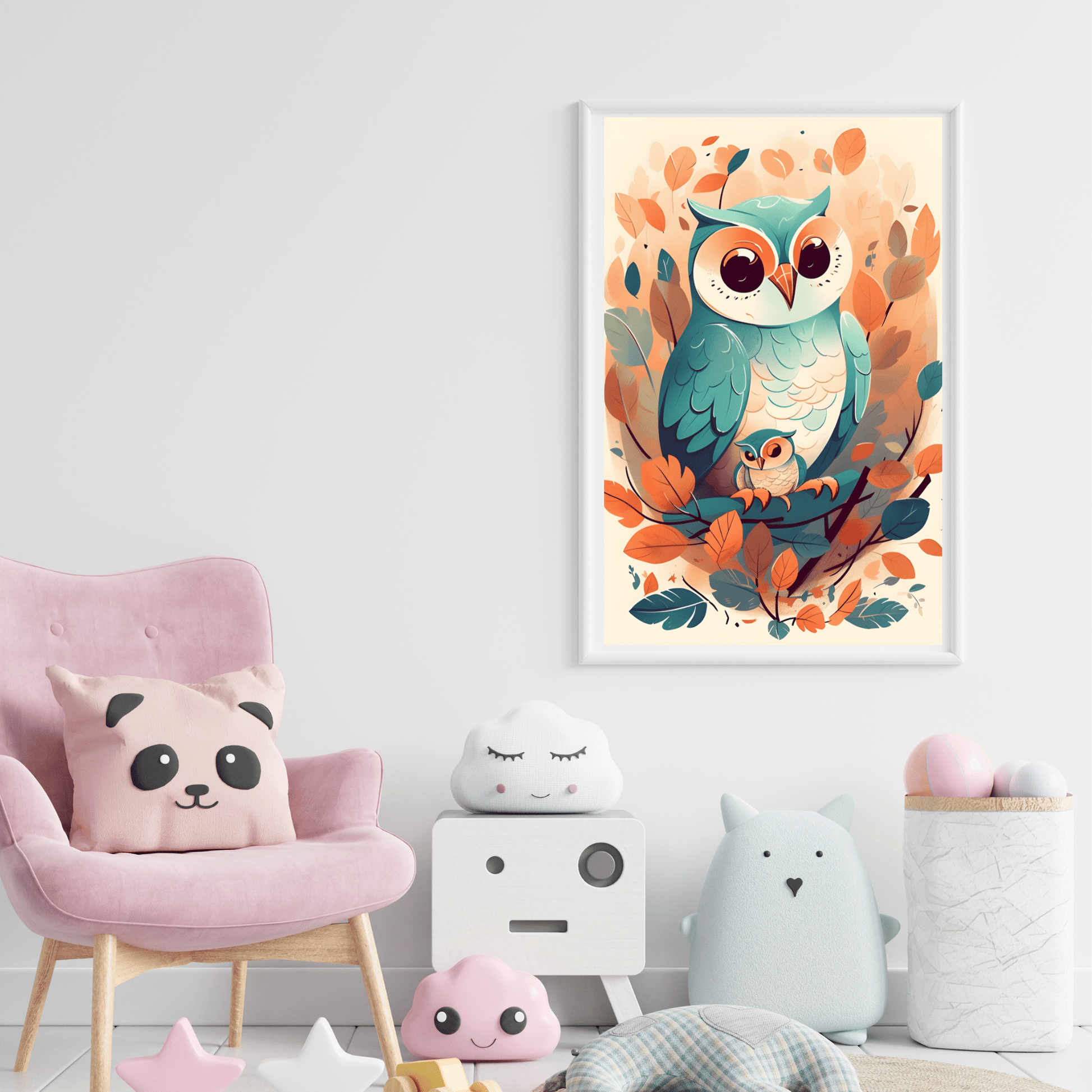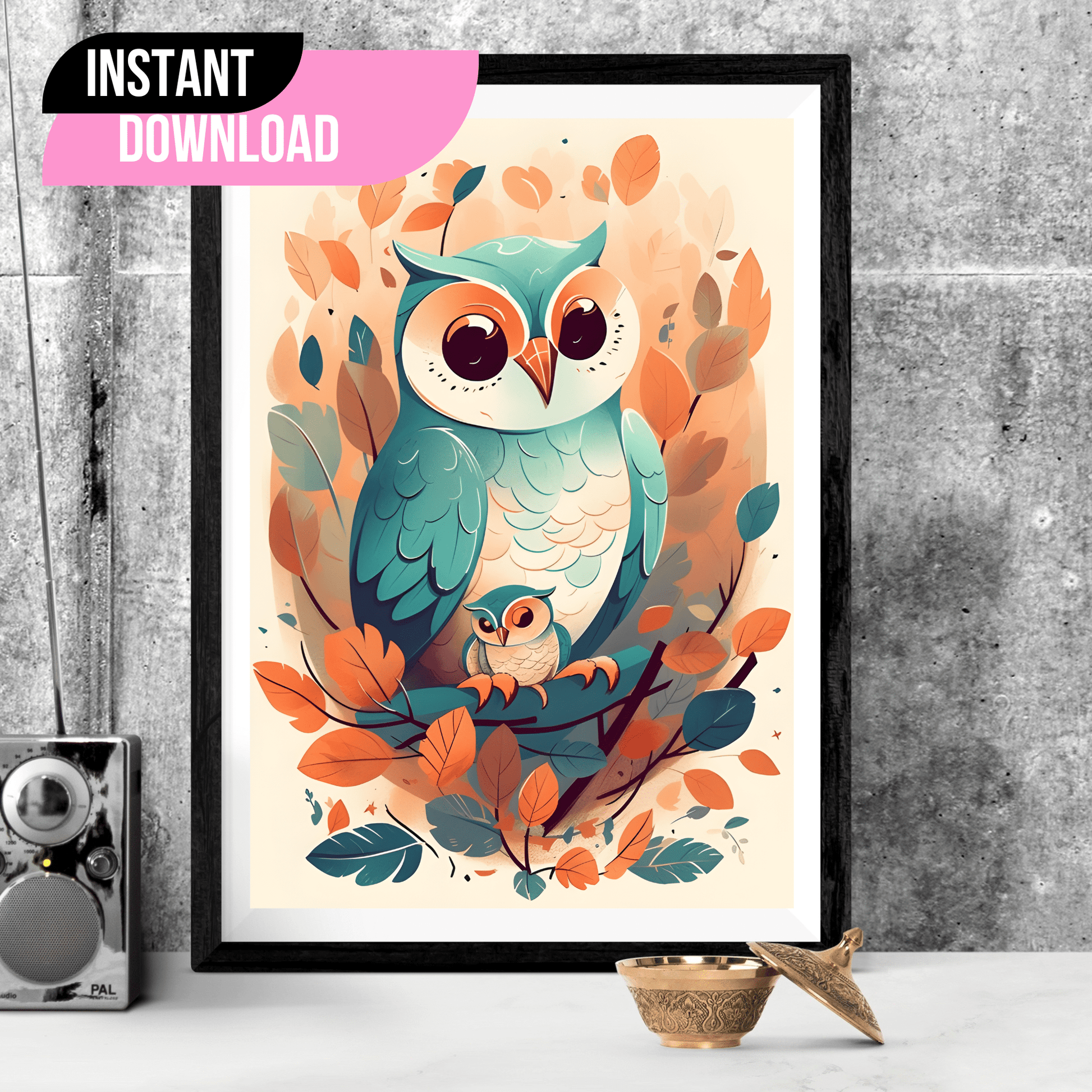 Introducing our exquisite 2023 Printable Modern Kids Wall Art Tropical Owl Print, a captivating addition to your little one's space!