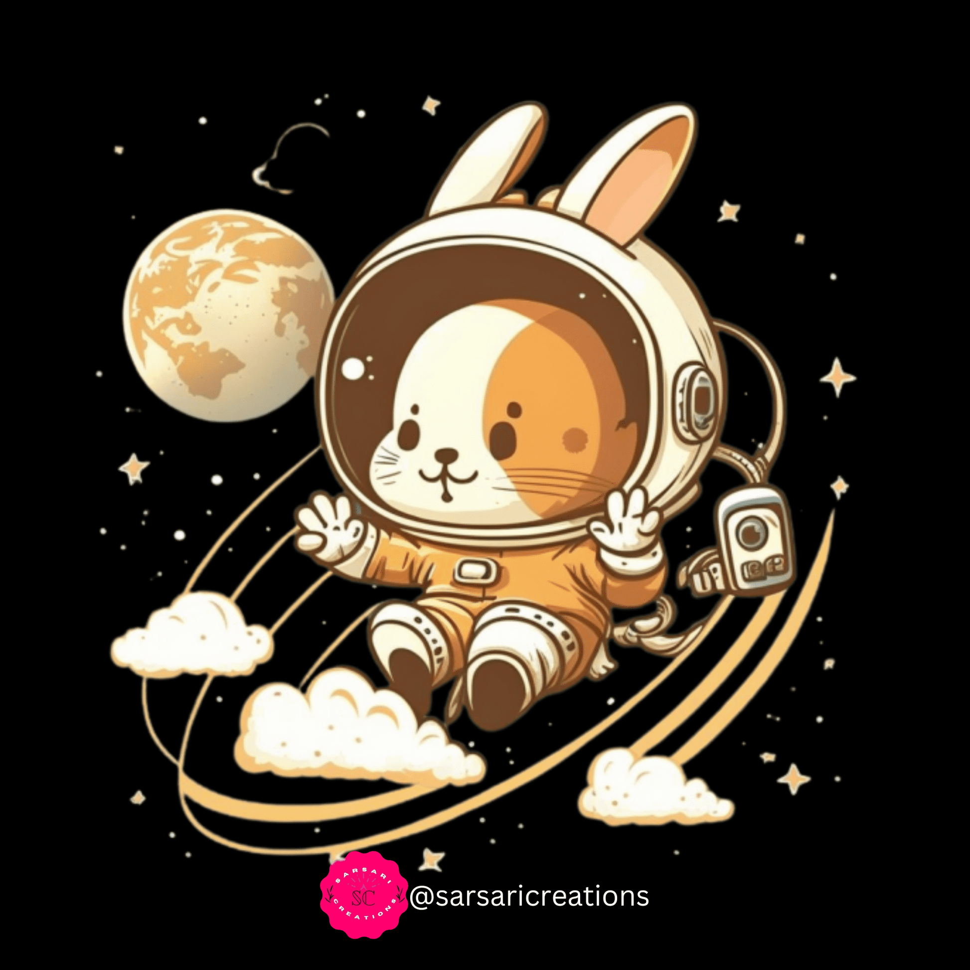Introducing the 2023 Unisex Ecstatic Funny Hoppy Groovy Easter Bunny Astronaut Space Bunny T-Shirt, exclusively available at Sarsari Creations!