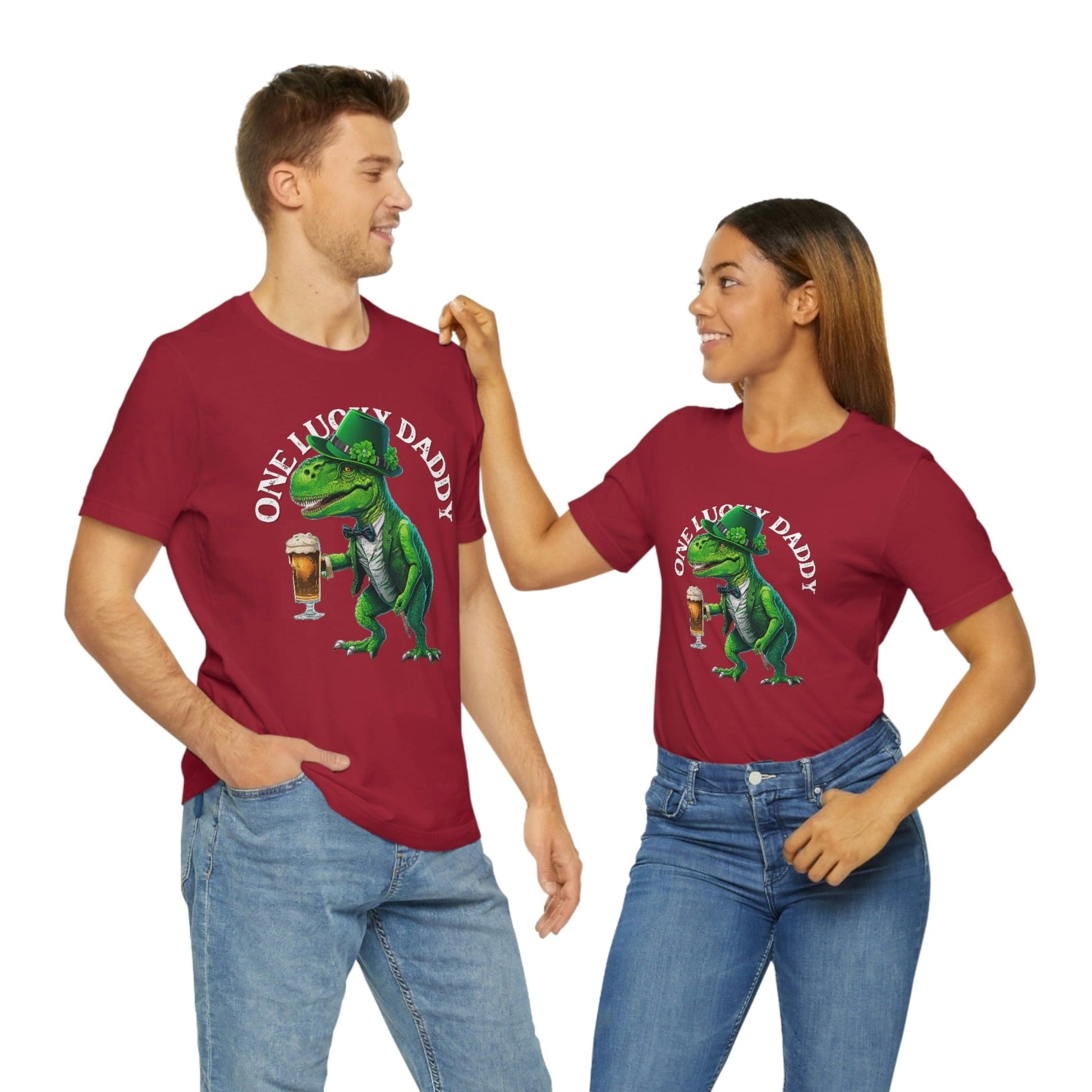 - Featuring a fun and playful design with a shamrock, the words "One Lucky Daddy," and a distressed look, this shirt is sure to be a hit with all St. Patrick's Day enthusiasts.
