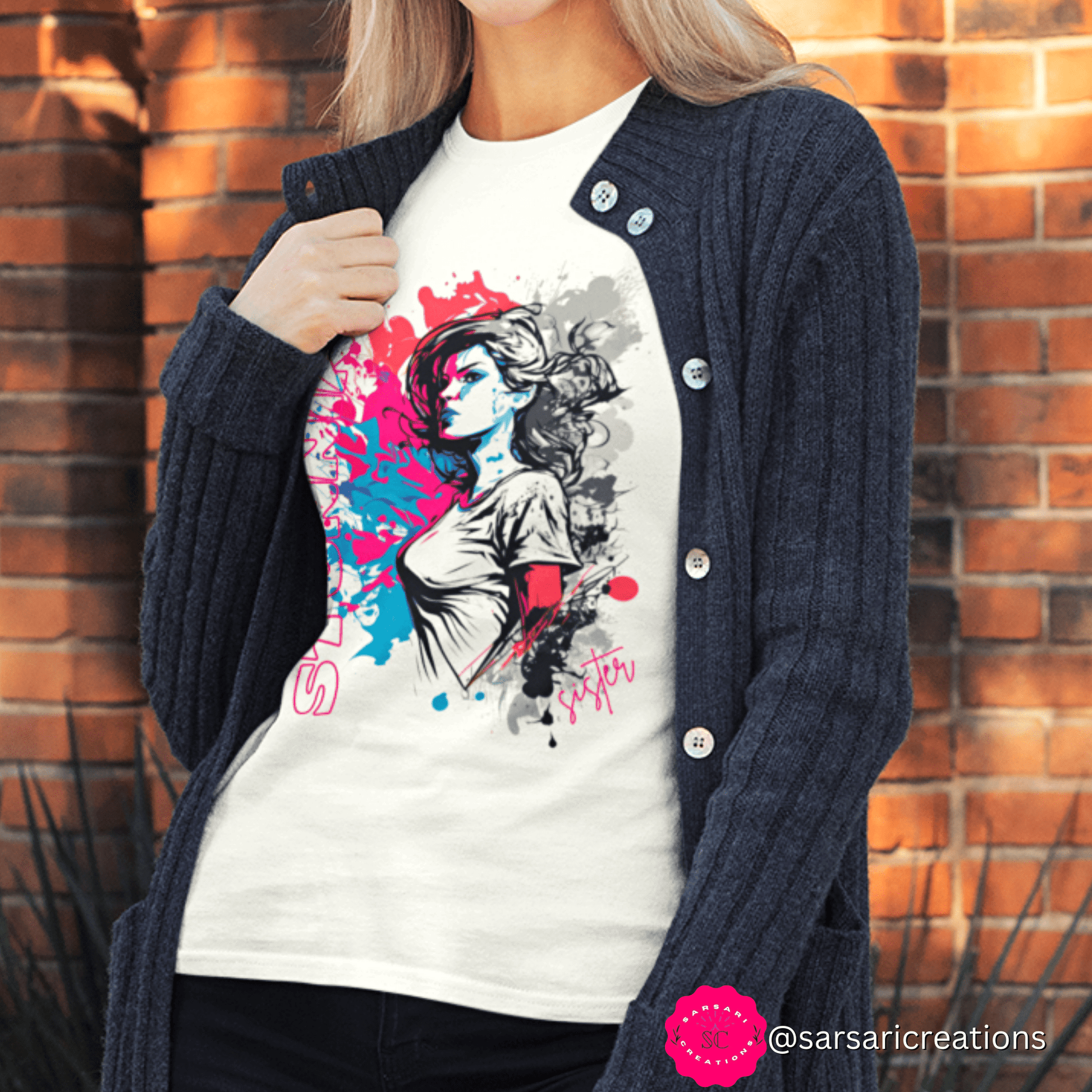 - The design features the words "Stunning Sister Full of Fire" in bold letters, along with a powerful feminist message that's sure to turn heads.