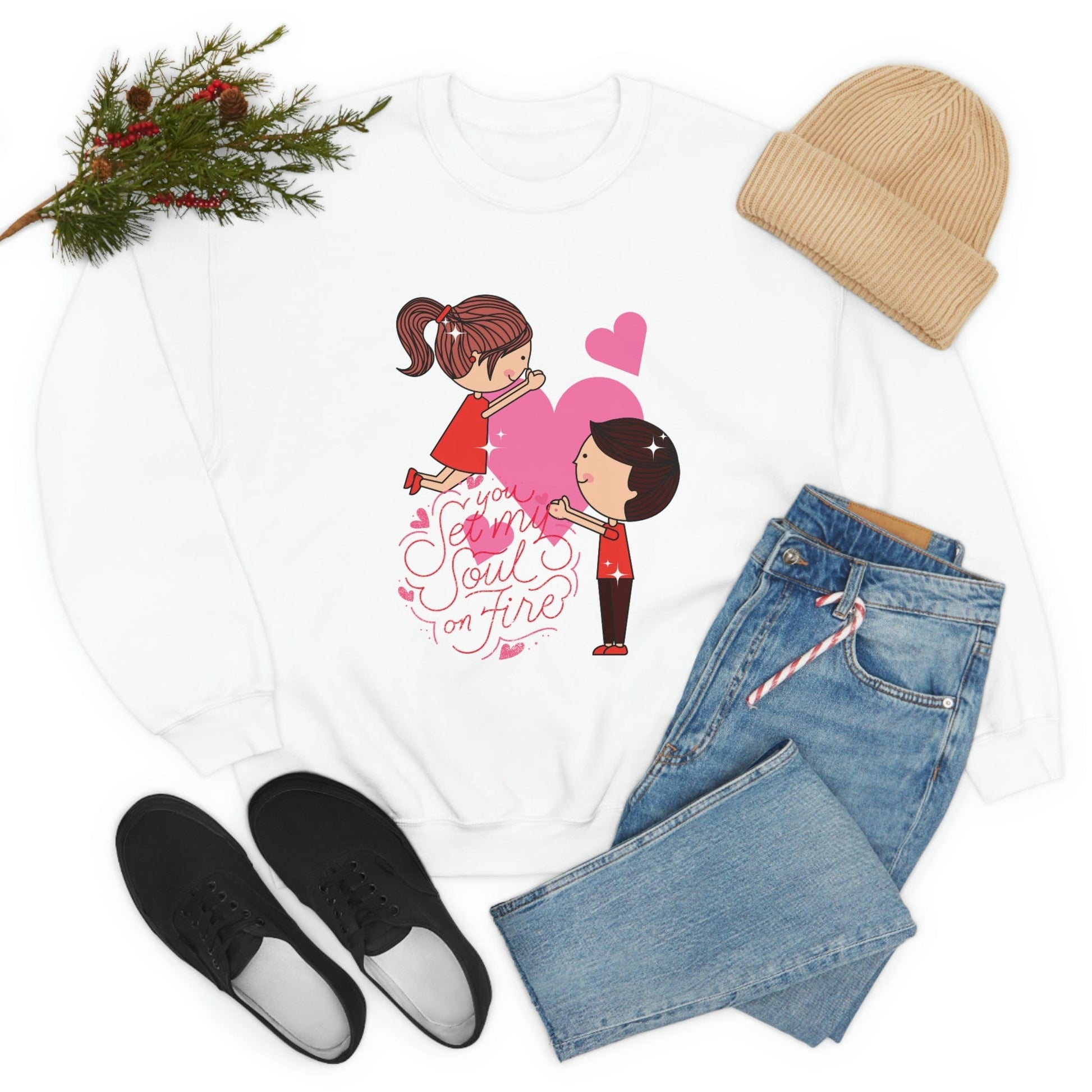 The playful design is sure to turn heads and spread love wherever you go. Whether it's a gift for your significant other or a treat for yourself, this sweatshirt is a must-have for Valentine's Day.