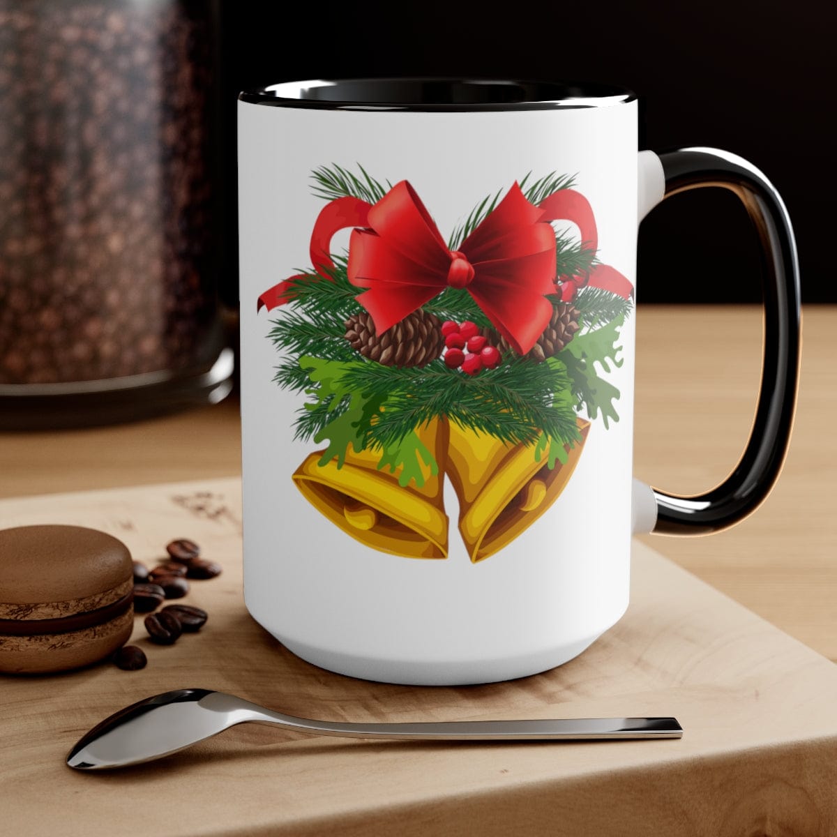 Bells of Christmas Coffee Mug - Home Decor - Gift for Holidays - 15 oz Two-Tone Coffee Mugs