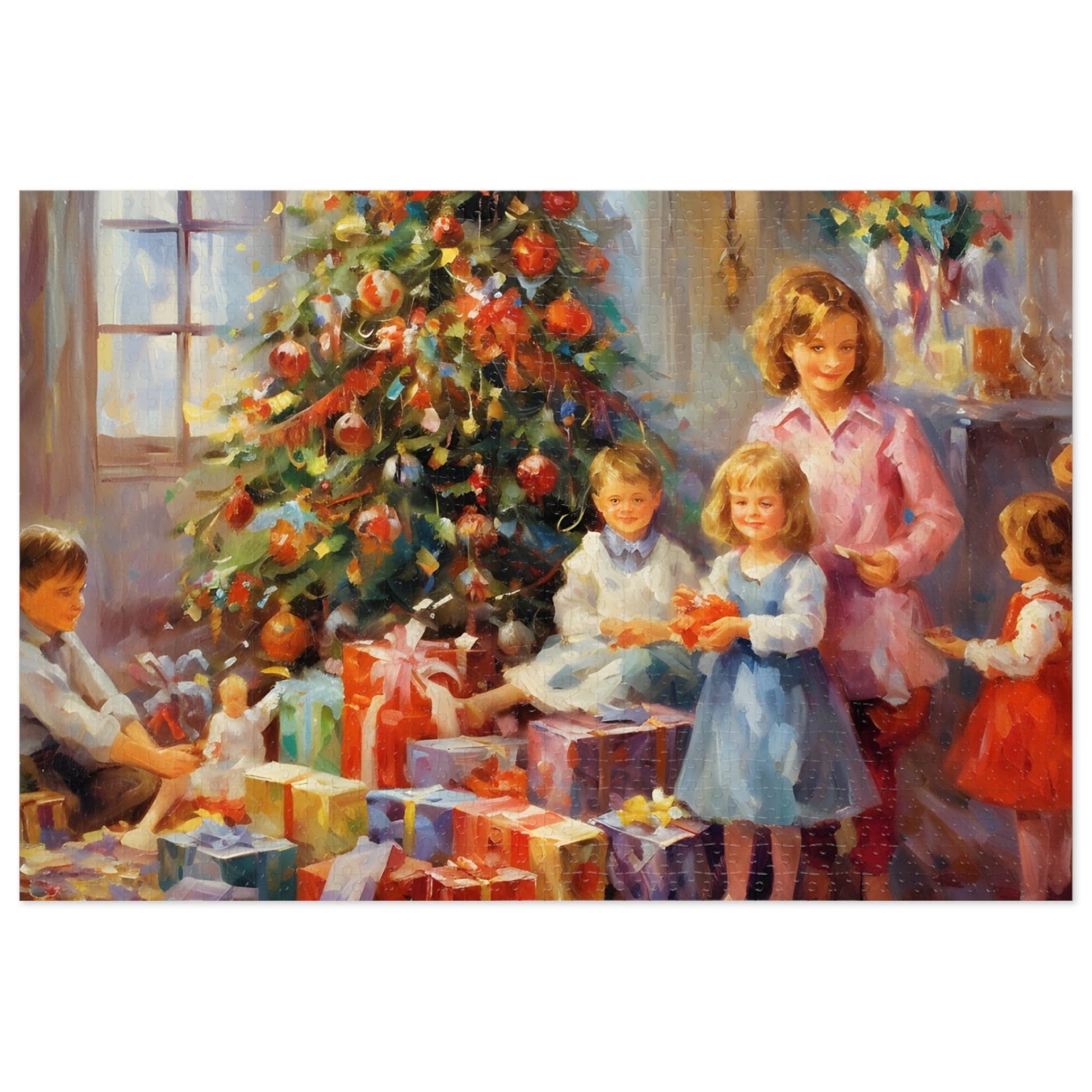 Christmas Tree Jigsaw Puzzle 1000 Piece: Children with Gifts Around Christmas Tree | Custom Sizes (110-1000 Pieces) | Hardest Puzzles | Christmas Family Activity | Educational Gift for All Ages