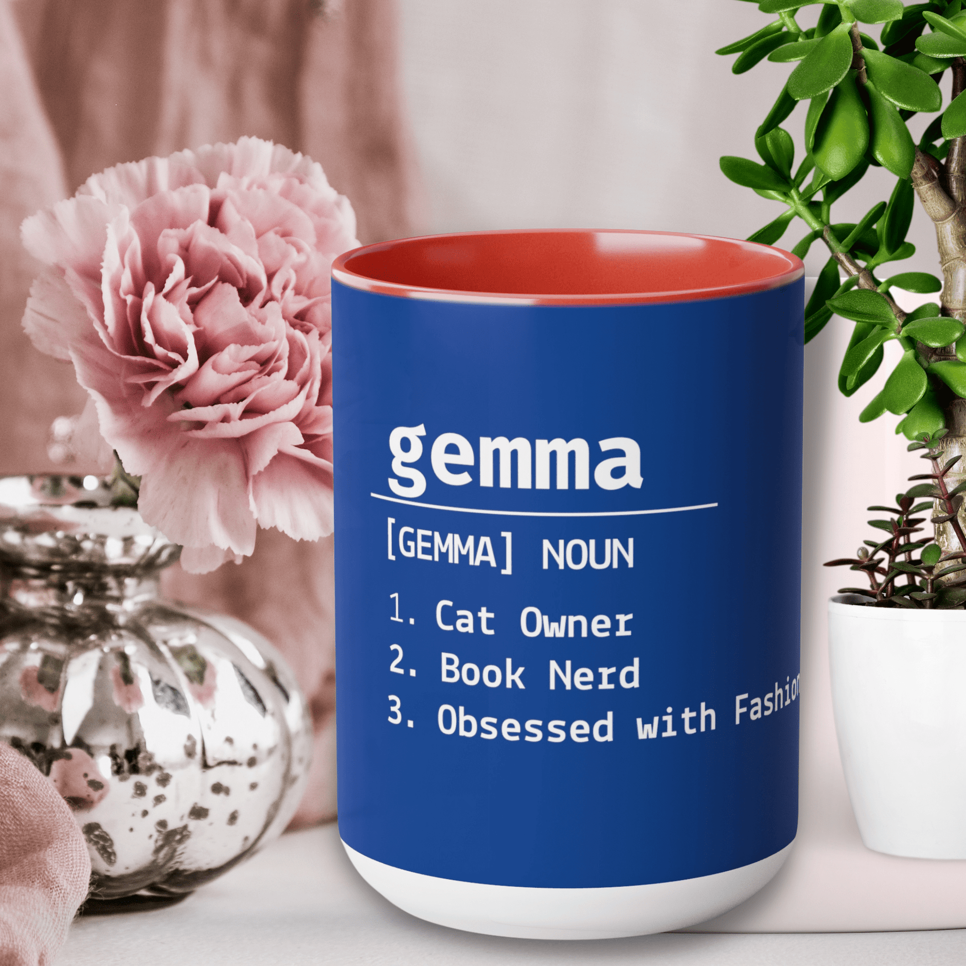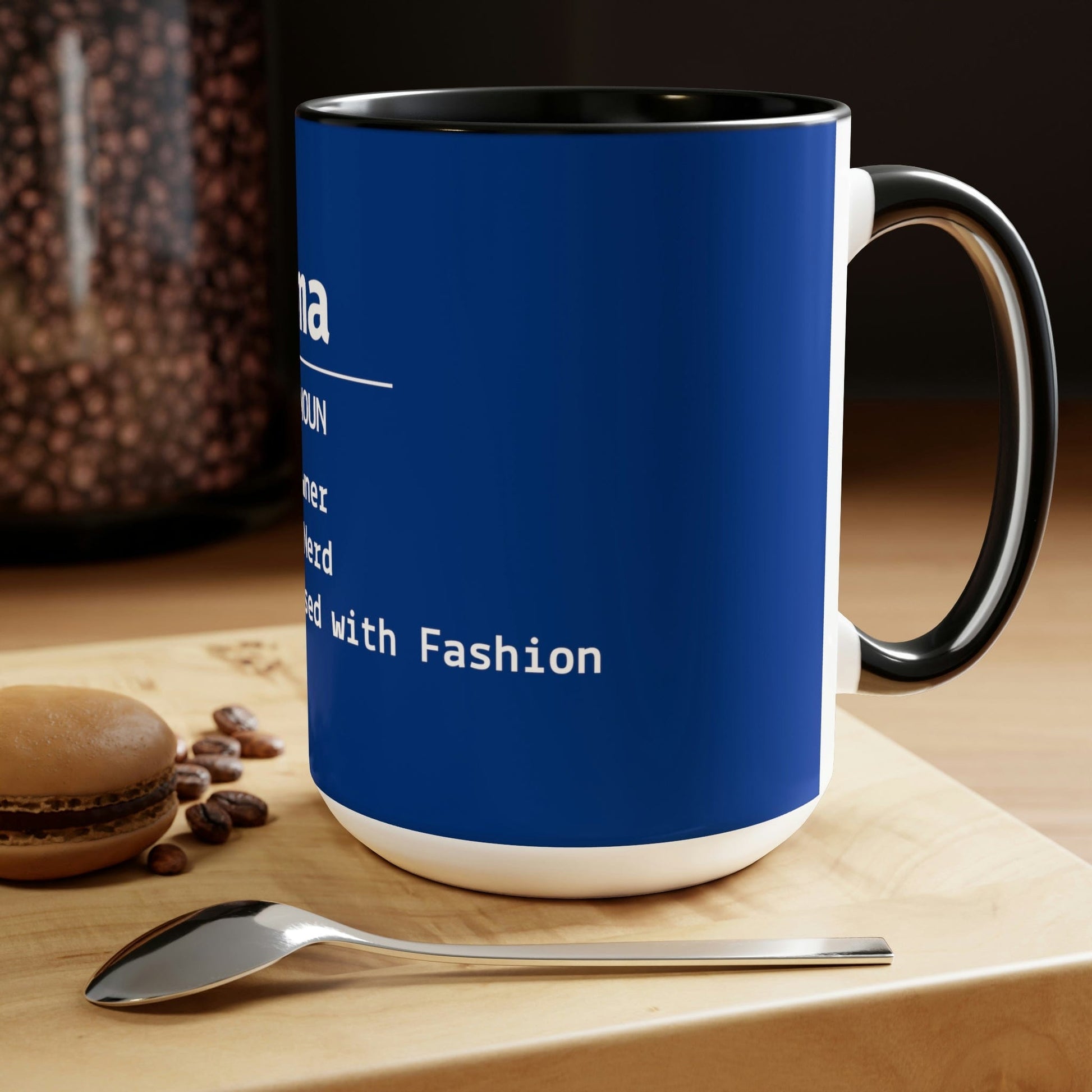 Make It Personal: Name Engraved Blue Mug 2023 with Name Definition for Mothers and Father's Day 15 oz Two-Tone Coffee Mugs