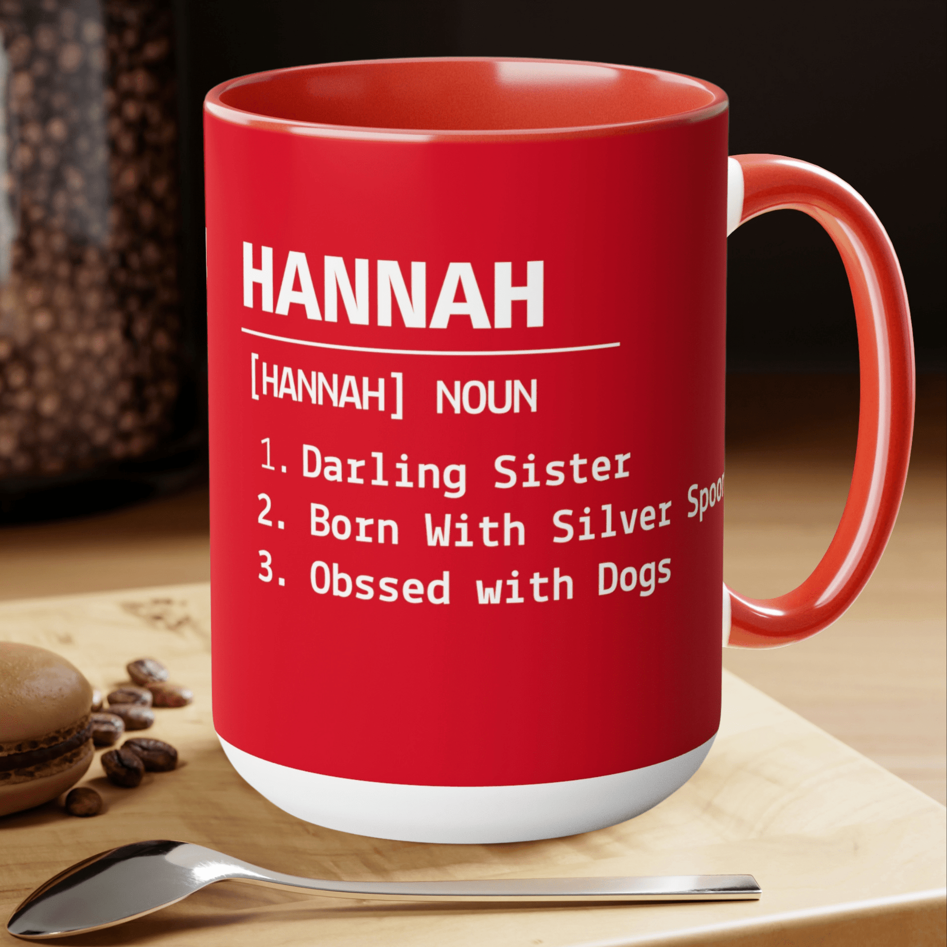 Introducing our personalized name definition mug, the perfect gift for your loved ones on special occasions like birthdays, anniversaries, and more! These 15 oz two-tone coffee mugs are designed to bring a smile to the faces of your friends and family members every time they take a sip of their favorite beverage.