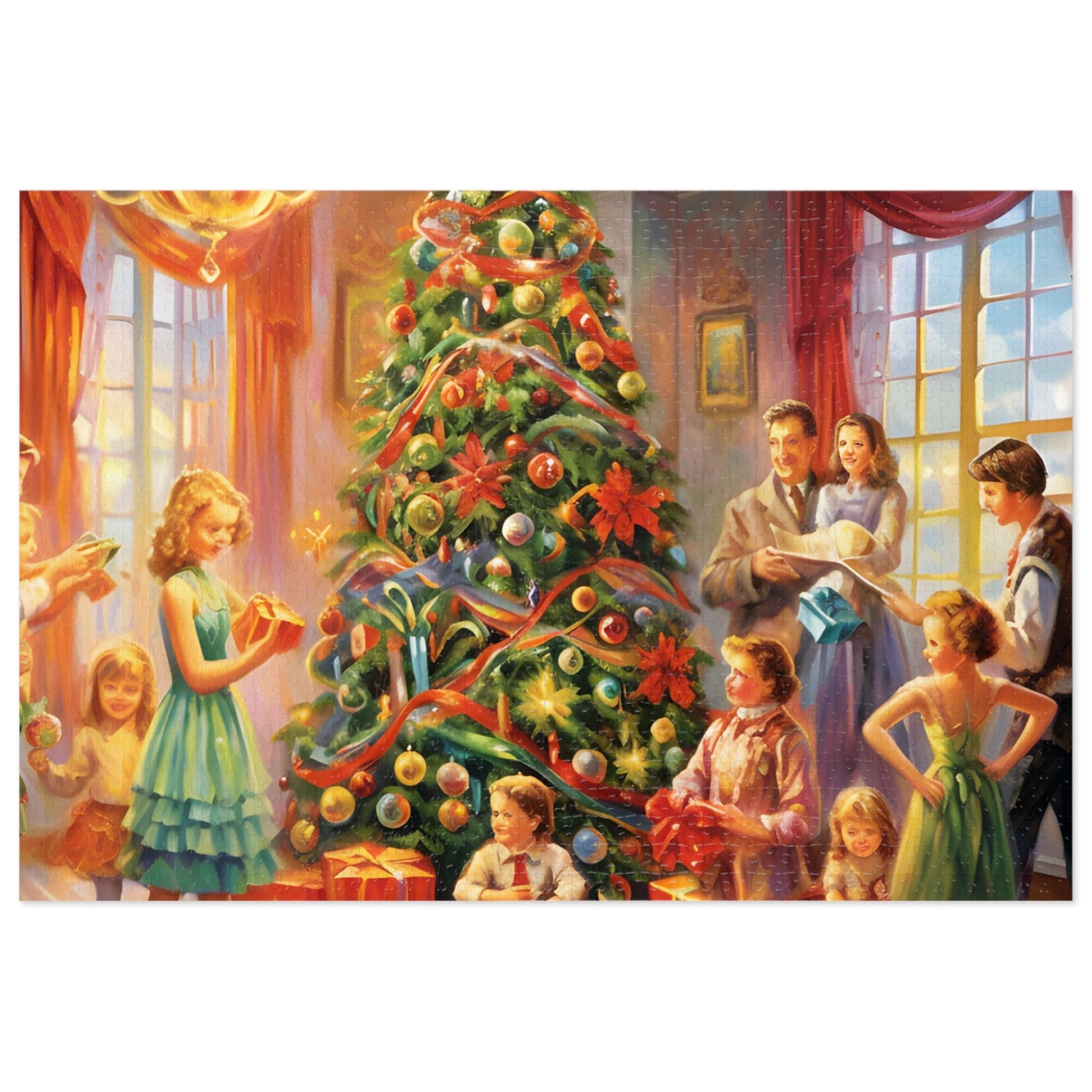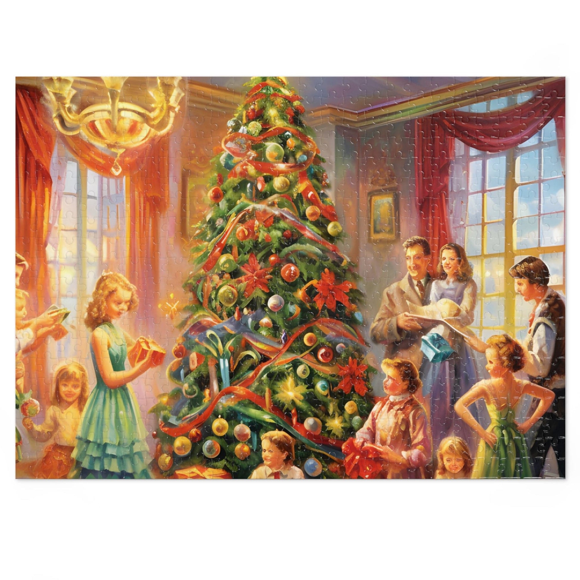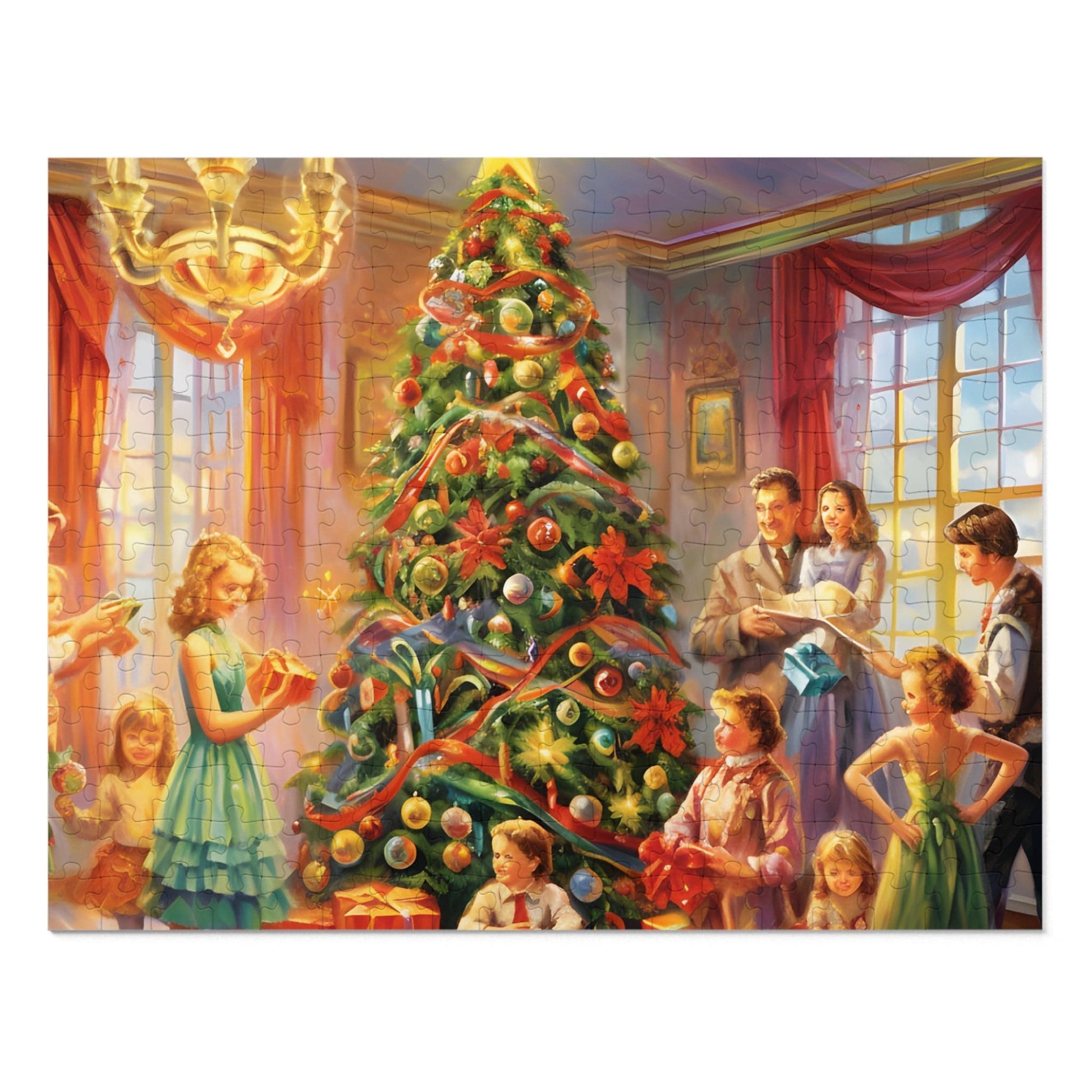 Indulge in the festive spirit with our Modern Christmas Jigsaw Puzzle featuring a beautiful oil-painted home party scene. This meticulously designed puzzle transports you to a joyful Christmas gathering, offering a unique blend of challenge and relaxation.