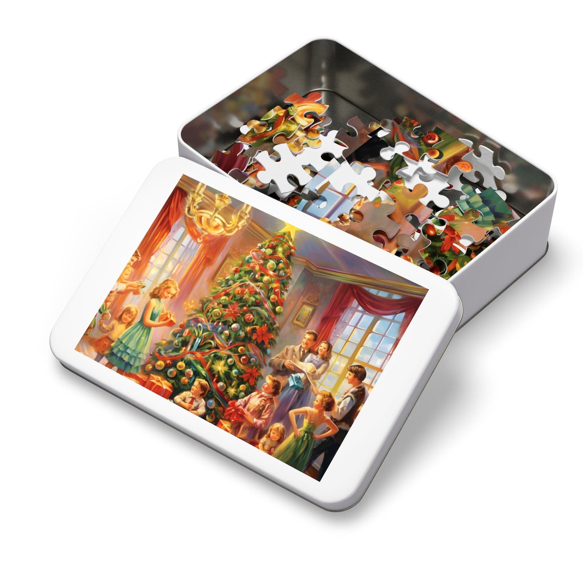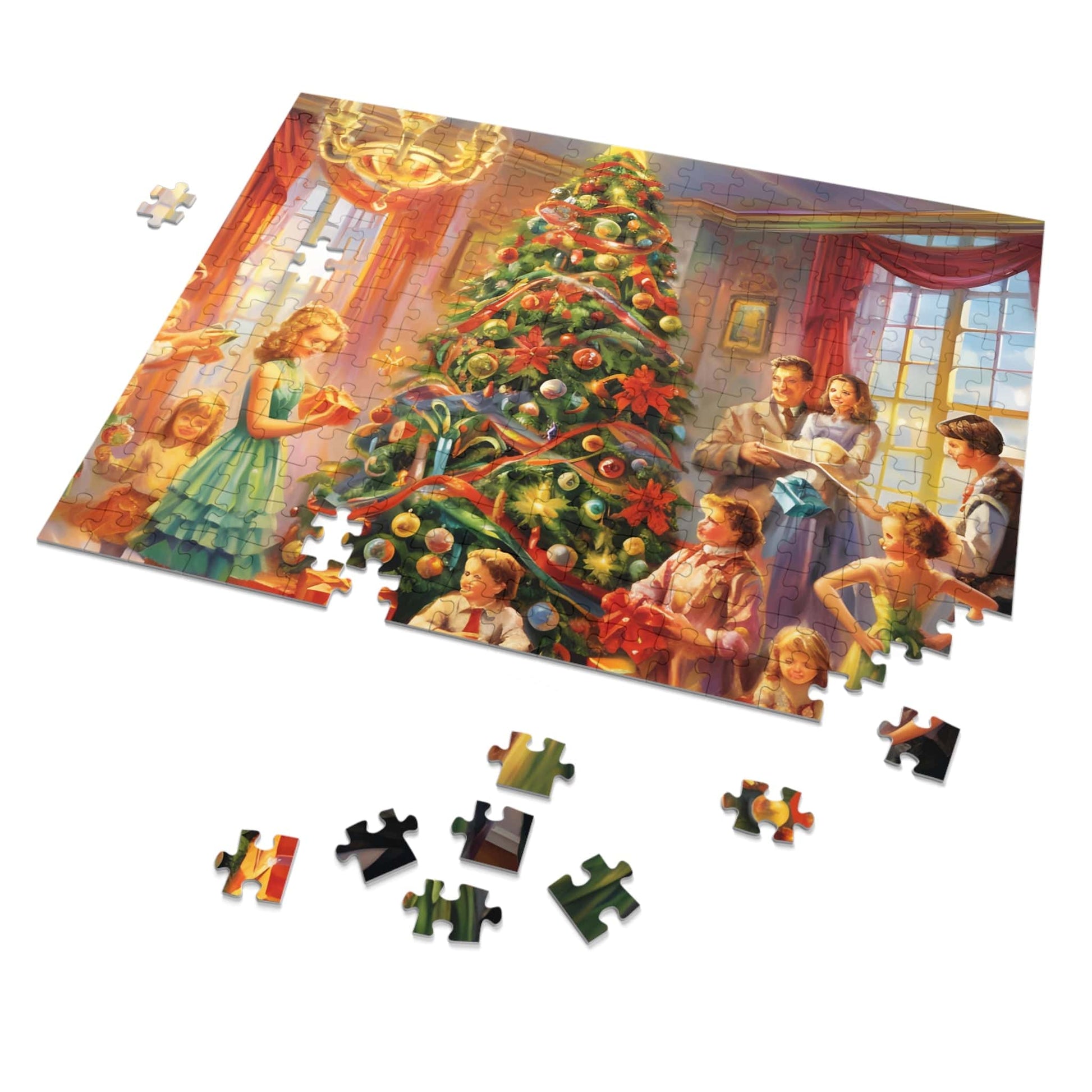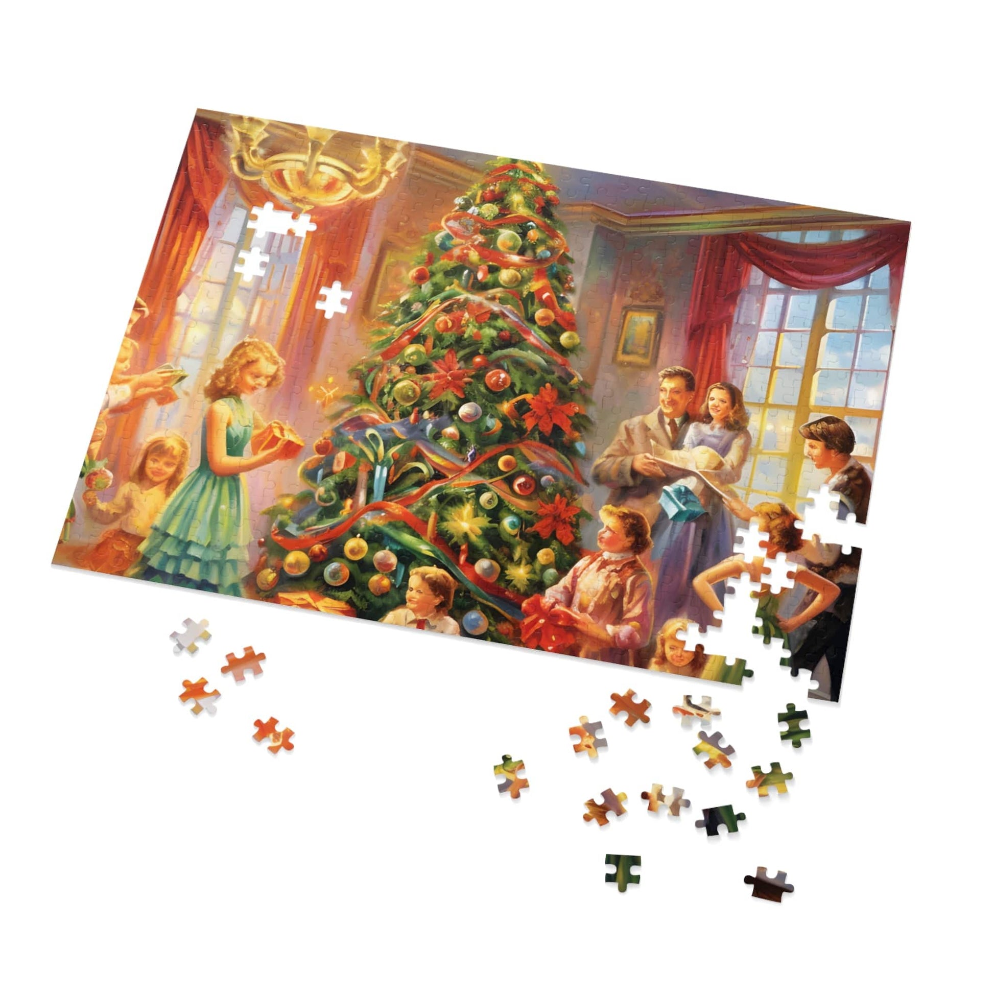 Indulge in the festive spirit with our Modern Christmas Jigsaw Puzzle featuring a beautiful oil-painted home party scene. This meticulously designed puzzle transports you to a joyful Christmas gathering, offering a unique blend of challenge and relaxation.
