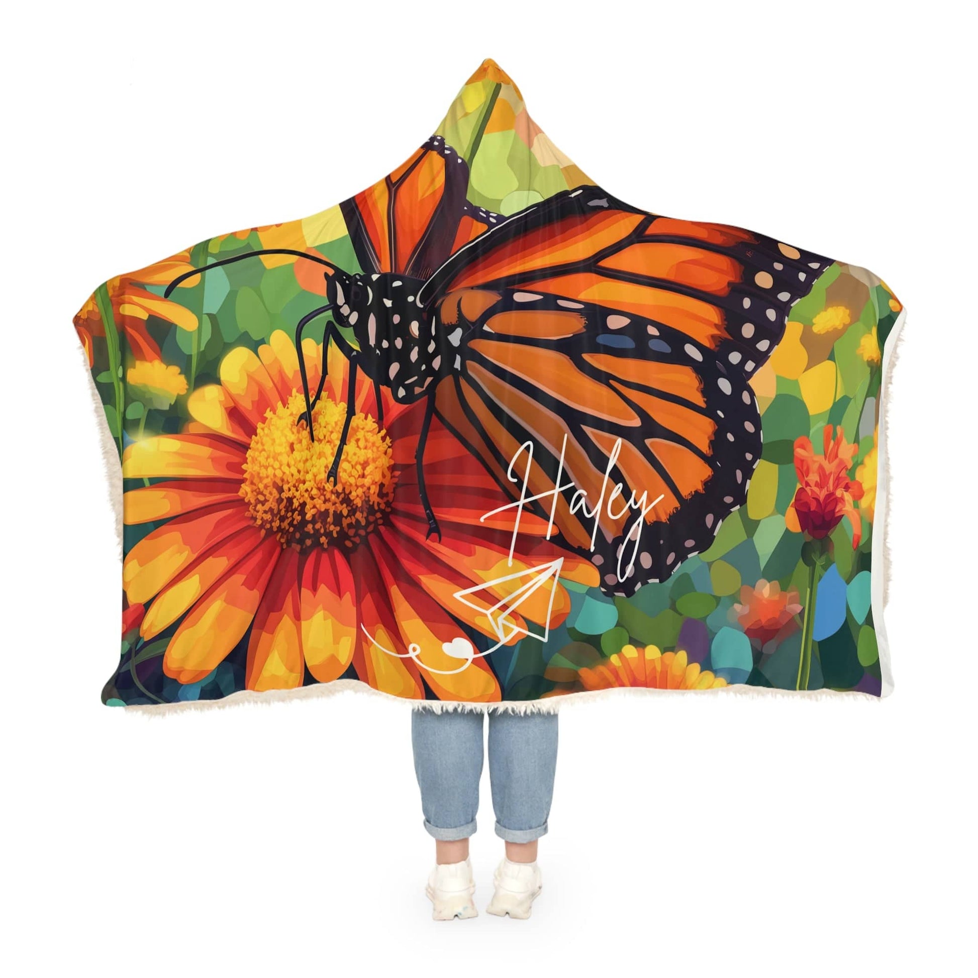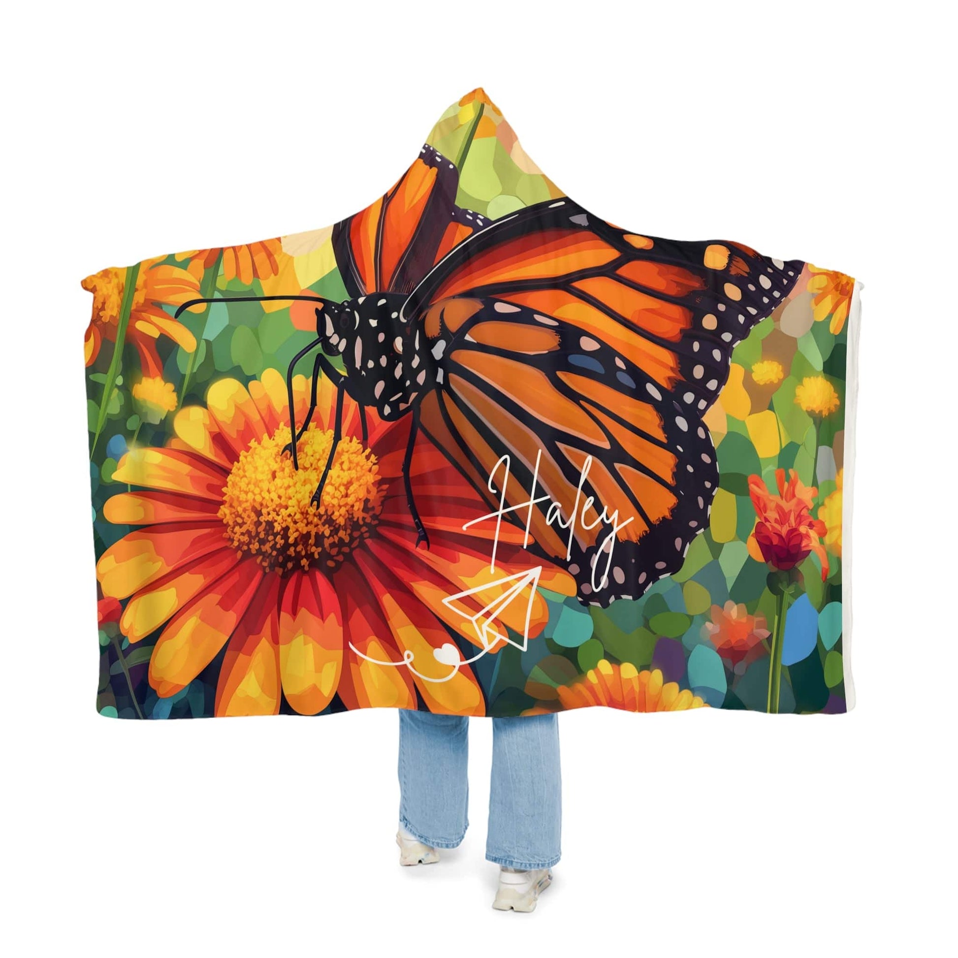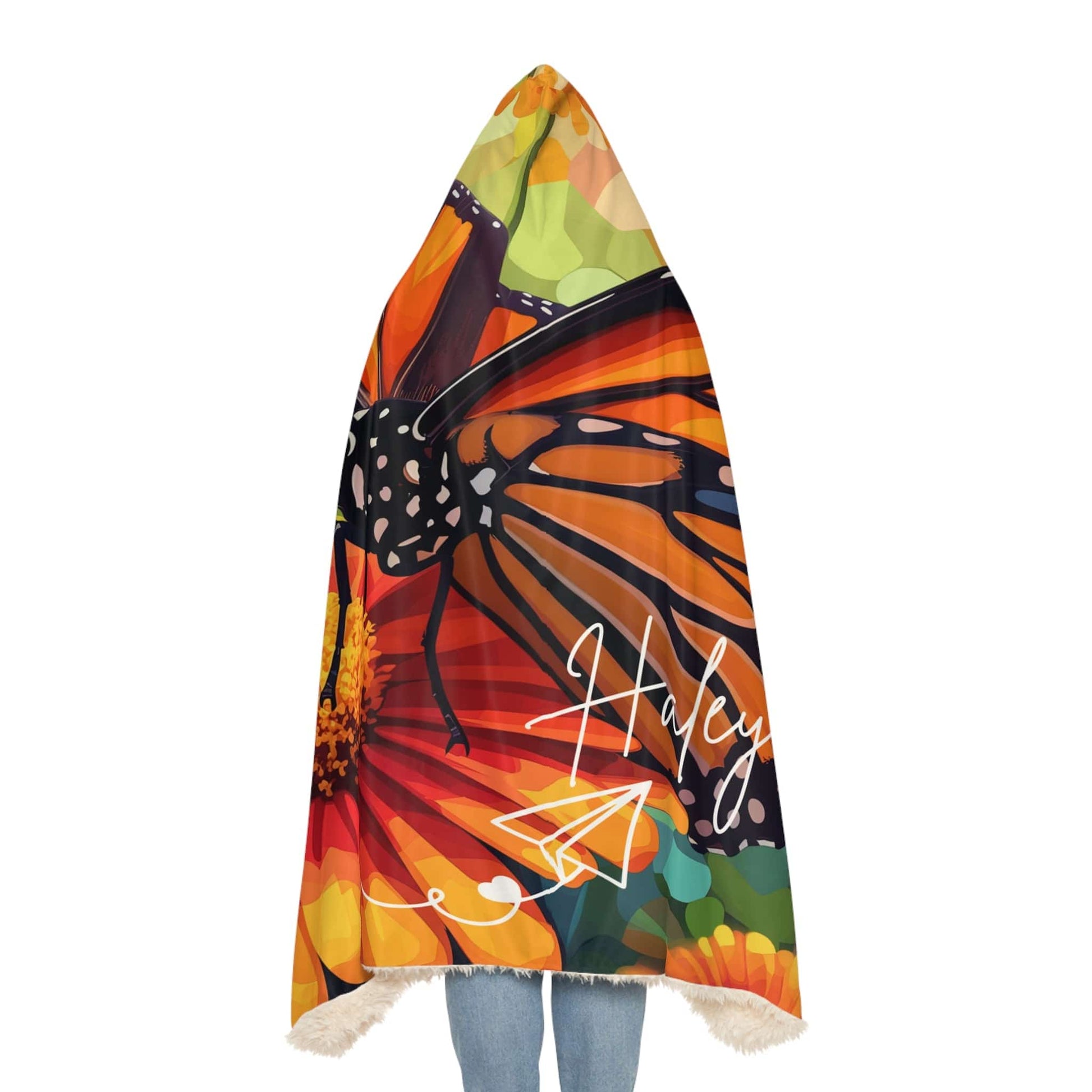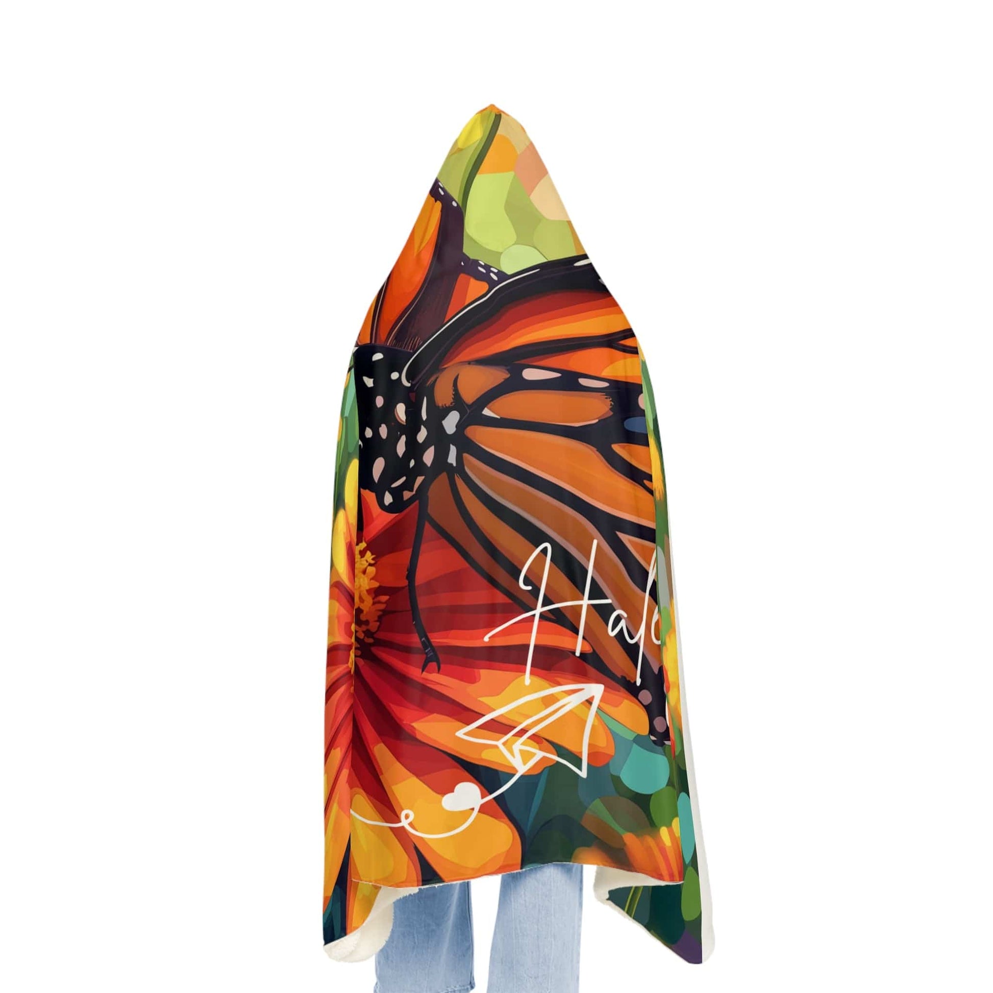 Soft Hooded Blanket Monarch Butterfly (203 x 140 cm) with Custom Name - Oversized Wearable Blanket for Women