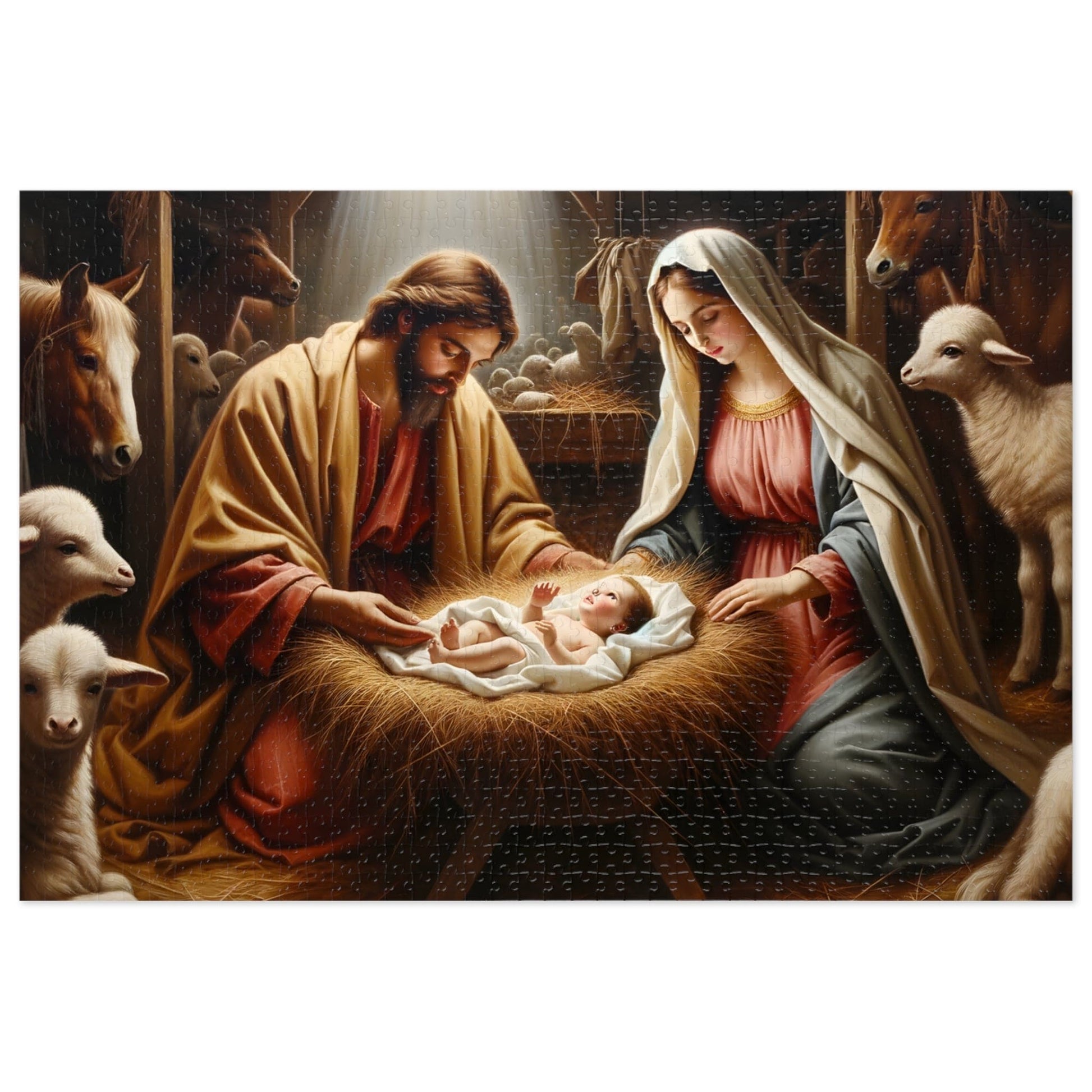Nativity Scene Jigsaw Puzzles 110, 252, 500, 1000 piece | Oil Painting of Jesus, Mary and Joseph | Limited Edition | DIY Stress Reliever Gift
