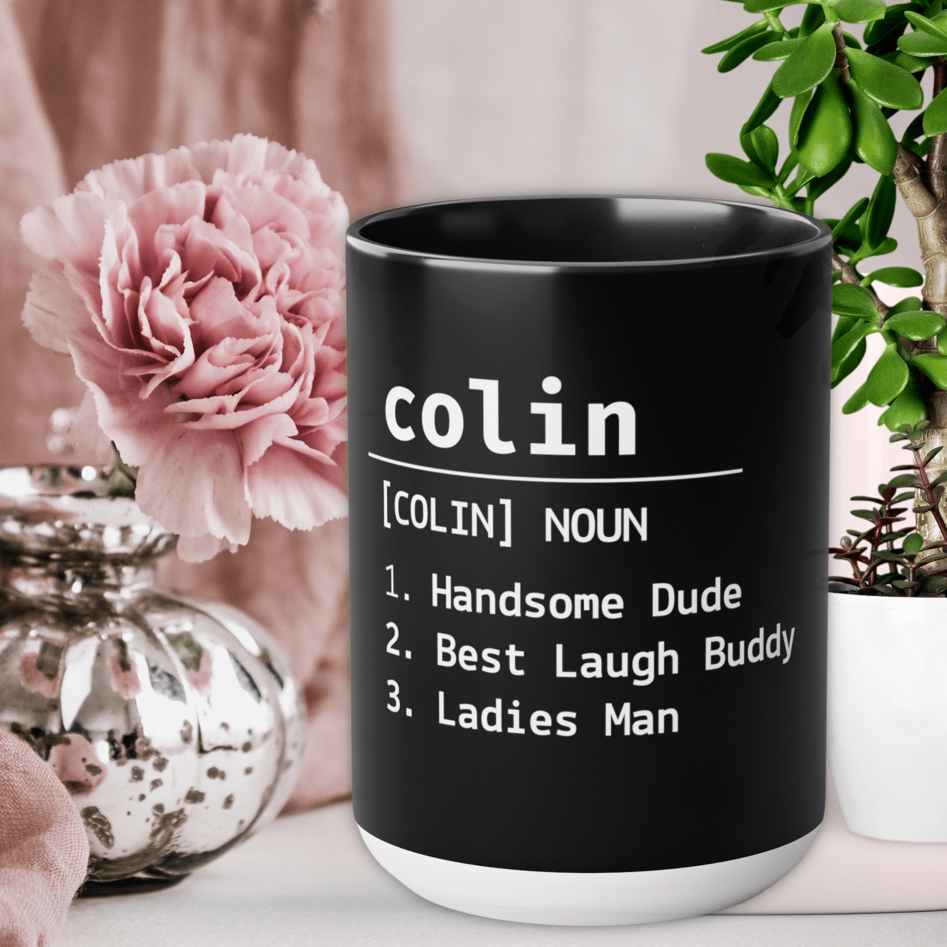 Introducing our "Create a Lasting Memory" personalised name definition mug, the perfect gift for Mum and Dad! These 15 oz two-tone coffee mugs are designed to make every sip of your favorite beverage special and memorable.