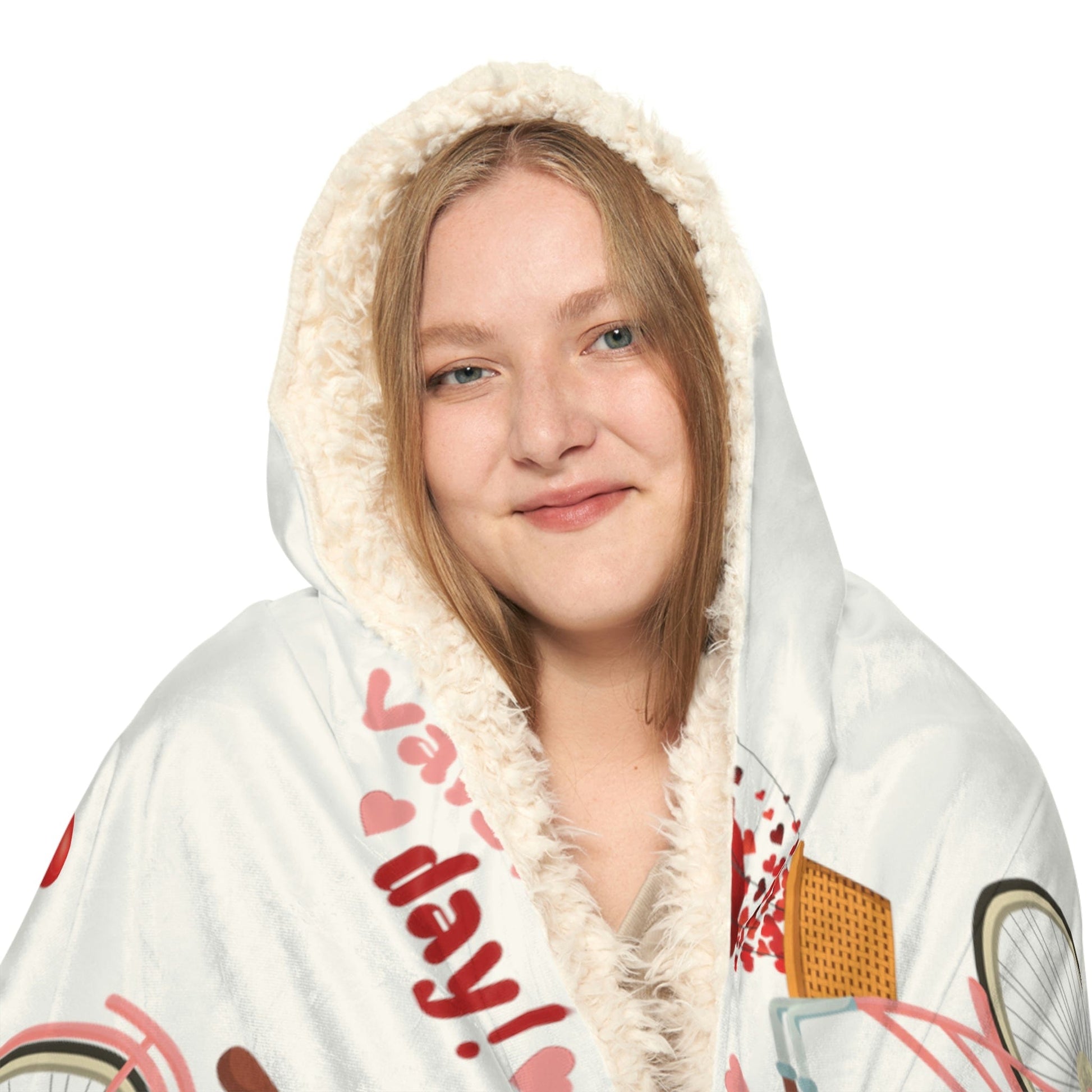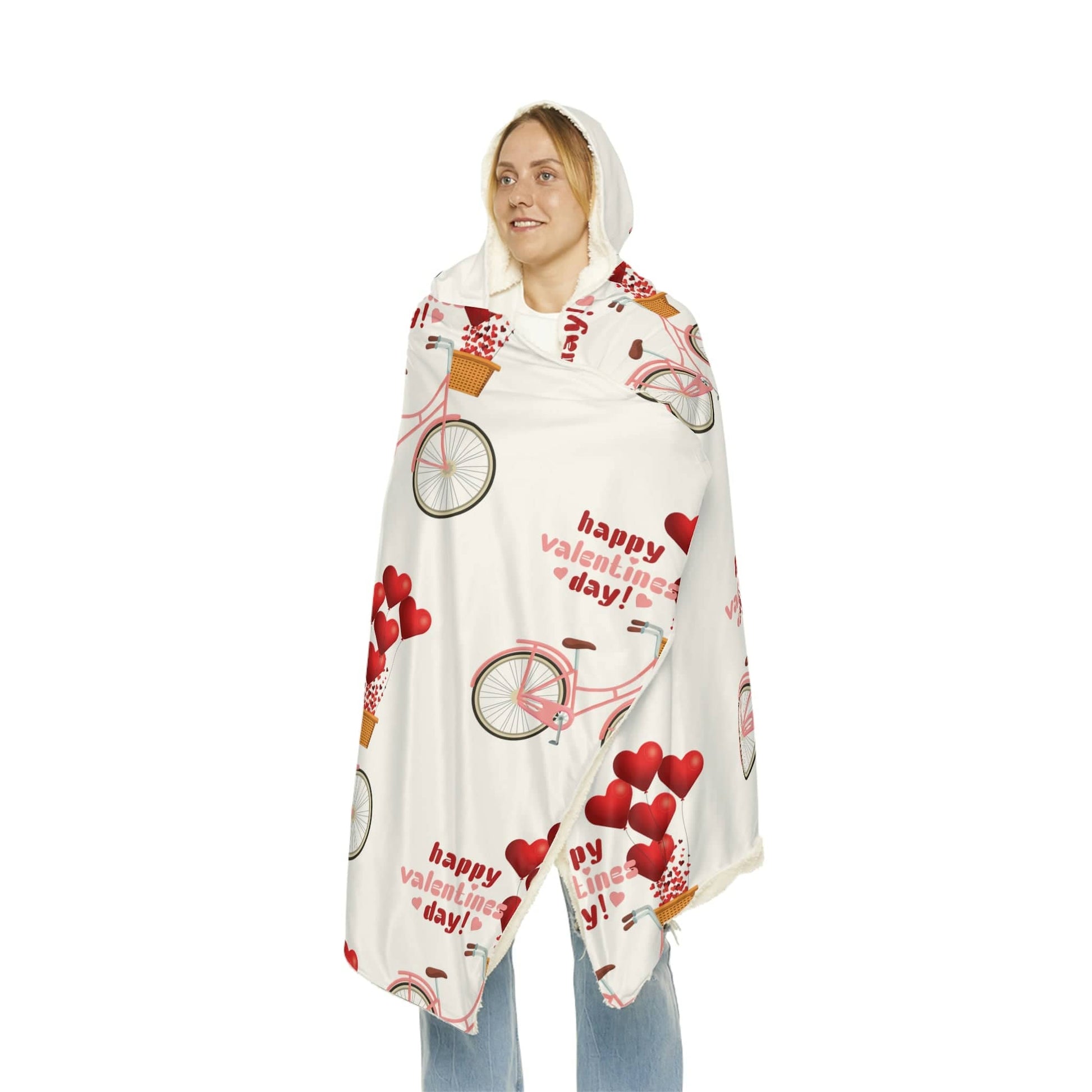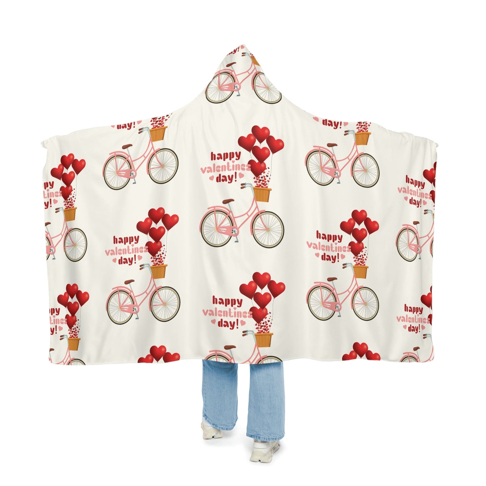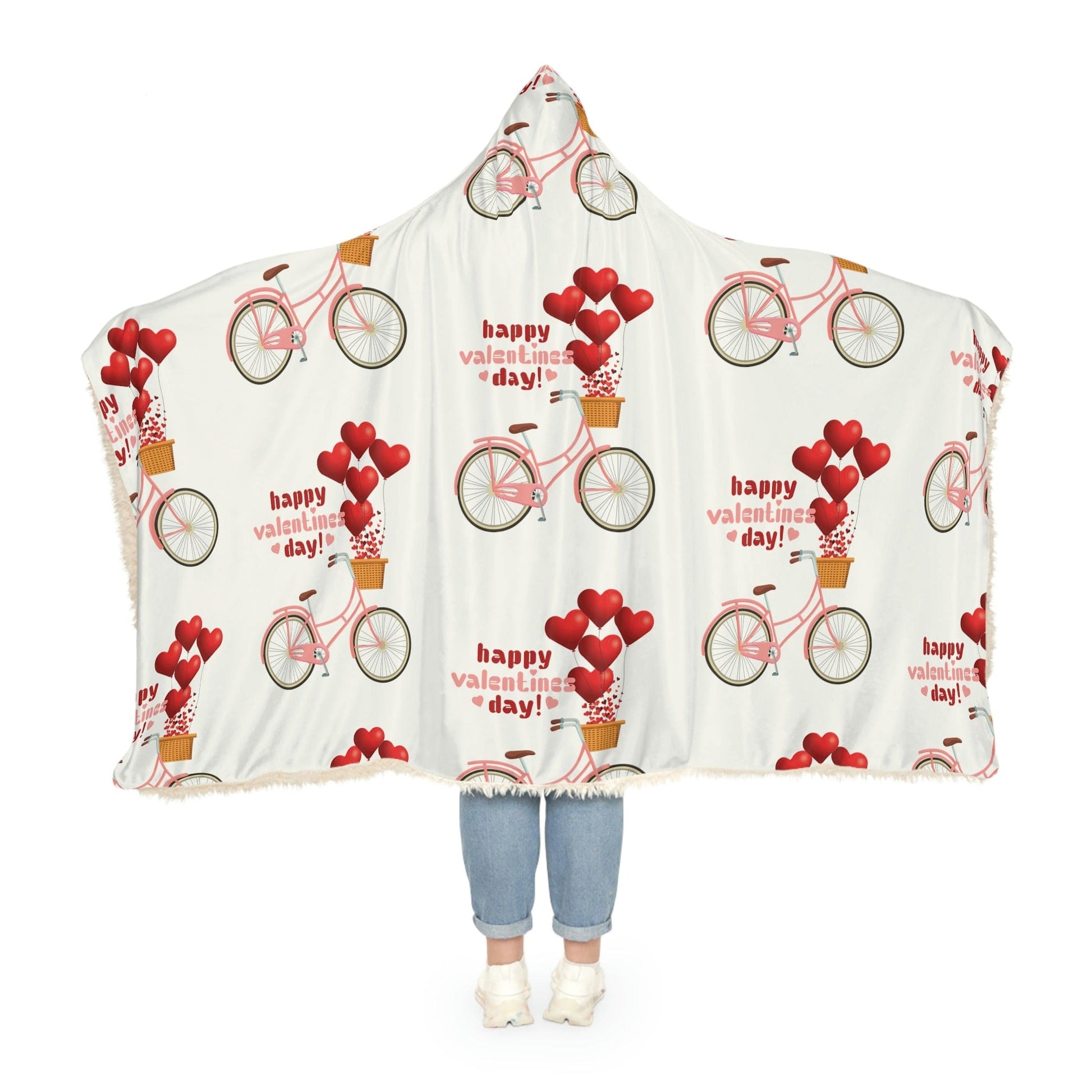 Stay warm and stylish with our Sherpa Snuggle Blanket with Red Heart Balloon Bicycle Print.