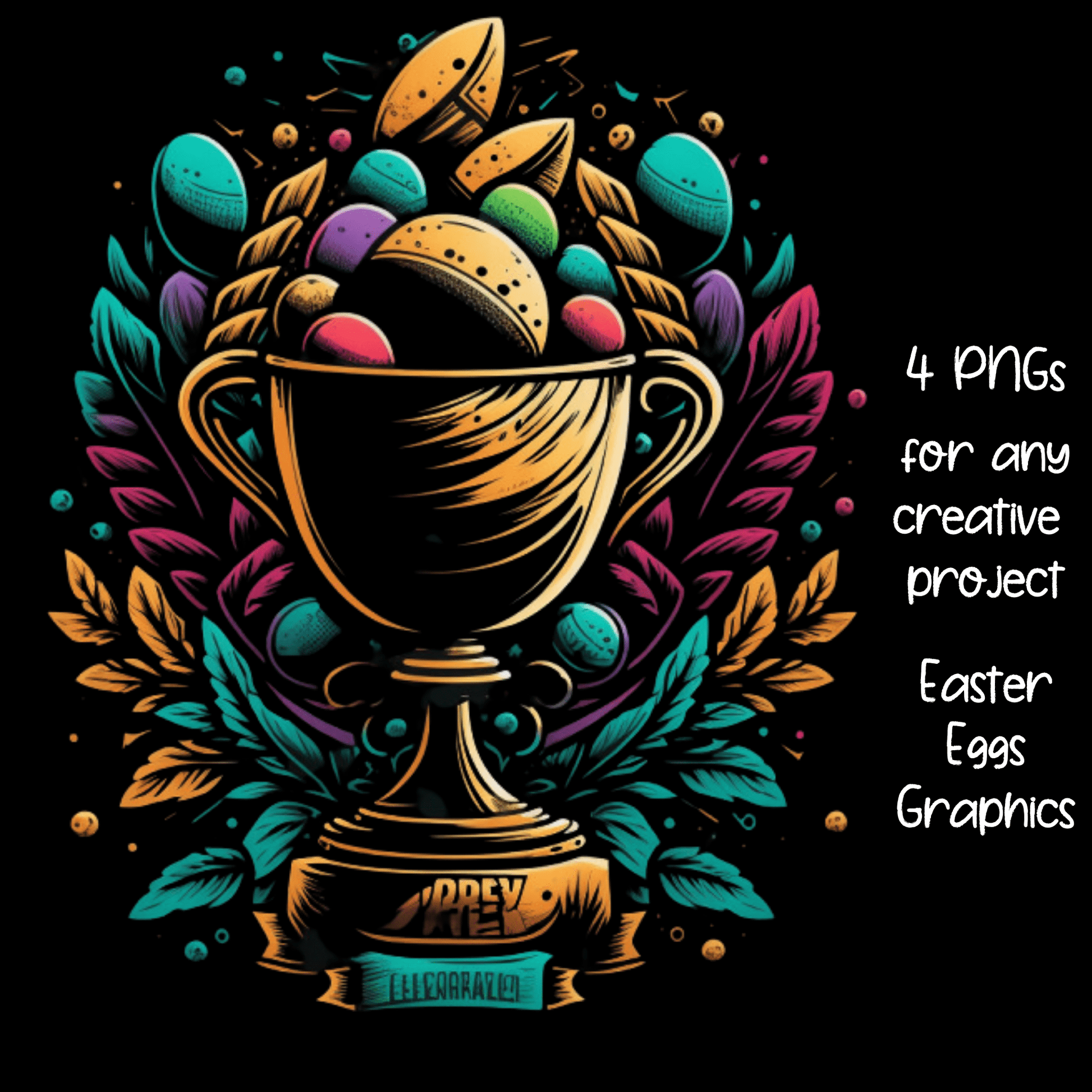 Introducing the "Vector AI Generated Trophy Easter Images 2023 4 PNGs Set" from Sarsari Creations Store - the perfect addition to your Easter design collection!